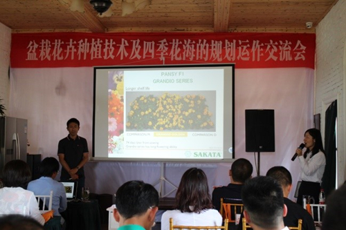 坂田公司此次主要向在座的客戶宣講今年花卉品種的新增花色和改良品種的優勢。另外,也向大家隆重介紹了坂田公司的無性系花卉桑蓓斯和現在流行的花海花鏡應用。在此次宣講中,不僅讓更多的花卉公司和花農了解坂田的產品,更與此次的主辦方浙江虹越和德陽明大取得了進一步合作,為以后新品種的推廣打下良好的基礎。