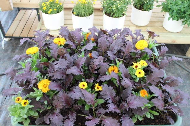 金魚草“彩虹糖”系列 芥菜“秀吉”與金盞菊“海中女神Ⅱ”的搭配