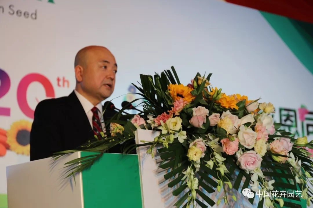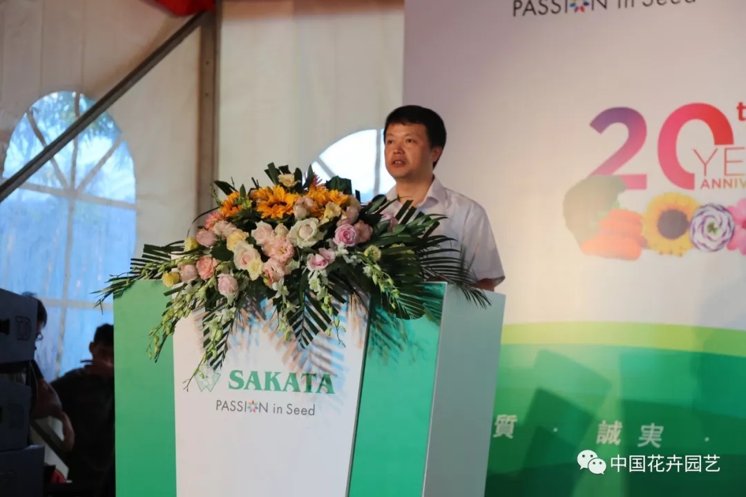 日本坂田種苗株式會社社長坂田宏發表了熱情洋溢的致辭。他說,坂田種苗成立于1913年,一直致力于花卉和蔬菜的育種及種苗事業。自1977年開始拓展海外市場以來,已在21個國家建設了27個基地,產品銷往全球170多個國家。隨著中國市場需求的持續擴大,成立于1998年的坂田種苗(蘇州)有限公司已成為坂田集團的重要基地之一。對于坂田(蘇州)而言,20年不僅是一個階段,更是一個起點,將繼續秉持“花養心、菜健體”的目標,向30周年、40周年邁進。