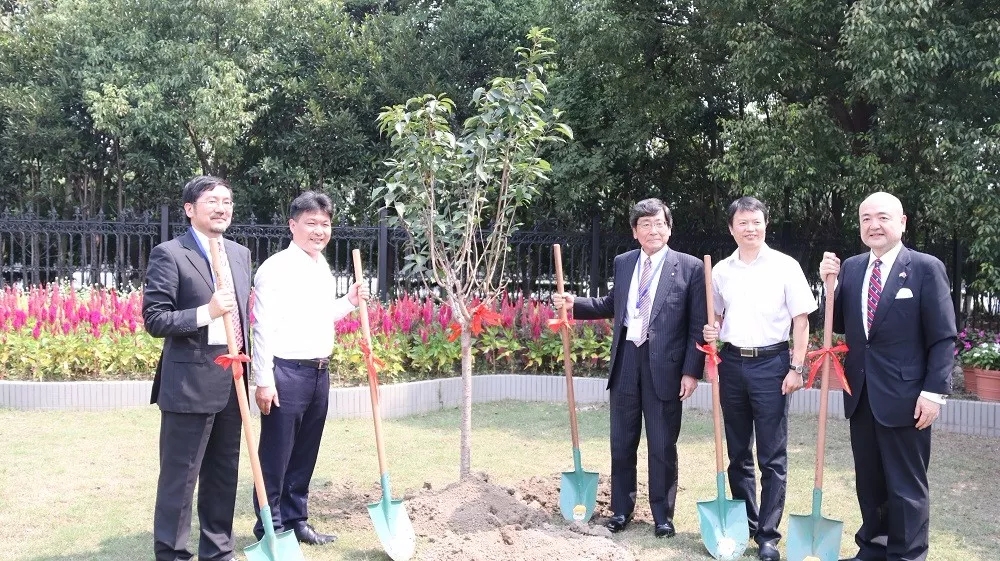 為了紀(jì)念二十周年這一難忘的時(shí)刻,坂田宏、許超震、片山和之、陸定峰、樓惠寶等共同在花壇栽下了一棵櫻花樹(shù)以作紀(jì)念。許超震說(shuō)等到下一個(gè)十年,這棵樹(shù)一定長(zhǎng)得很大,就像坂田中國(guó)一樣發(fā)展壯大。