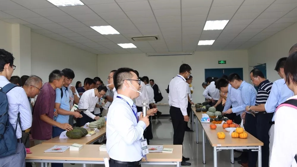 與會(huì)人員與坂田中國(guó)員工探討花卉品種,指出市場(chǎng)對(duì)性狀的需求。